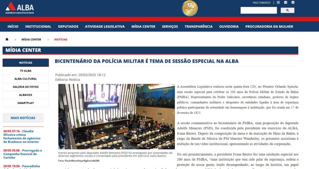 Alba realiza sessão especial em homenagem aos 200 anos da Polícia Militar da Bahia
