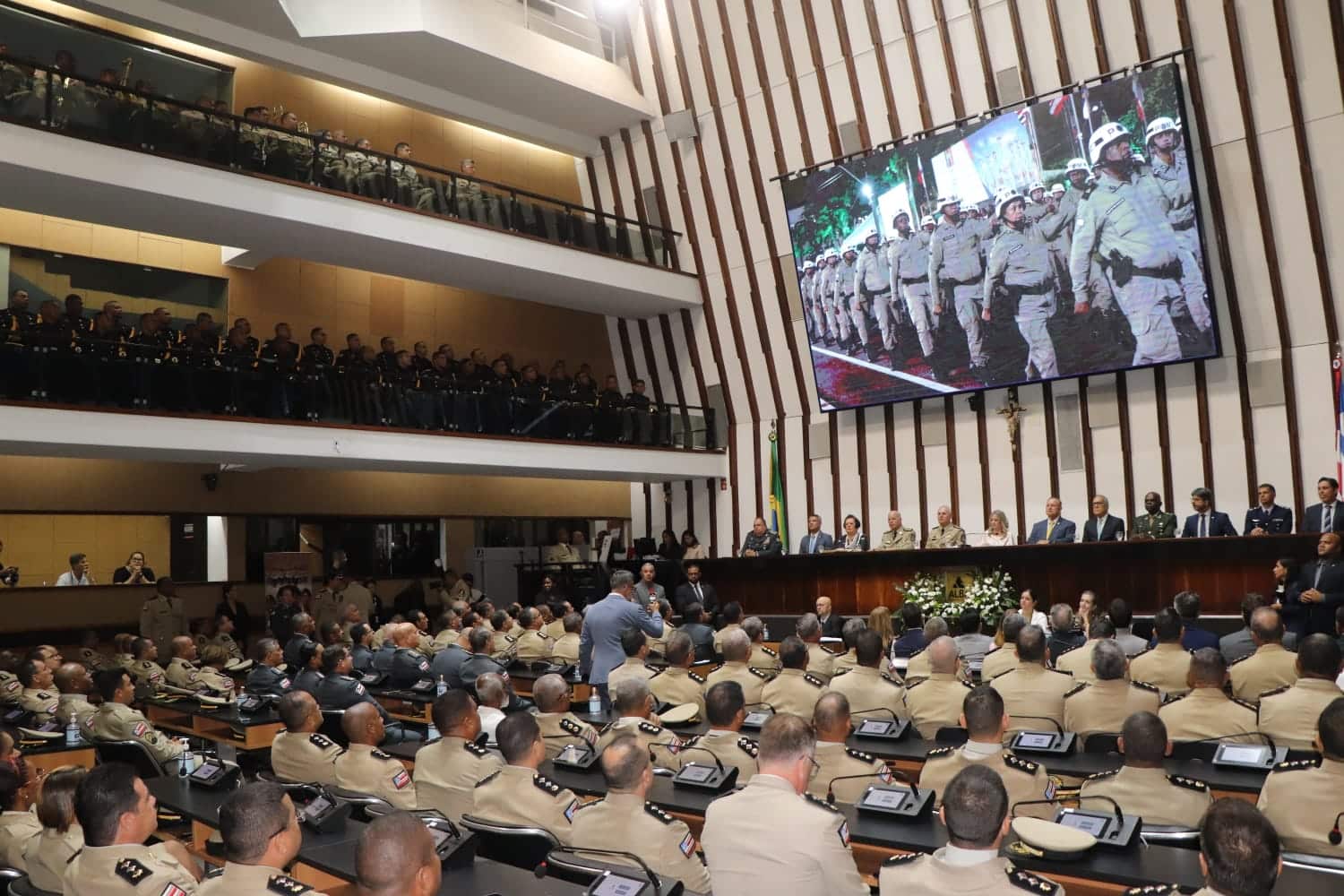 A homenagem, proposta pelo deputado estadual Adolfo Menezes, reuniu autoridades, parlamentares, oficiais e praças da PMBA e Corpo de Bombeiros Militar, que prestigiaram o bicentenário da instituição policial militar baiana, completos em 17 de fevereiro de 2025.